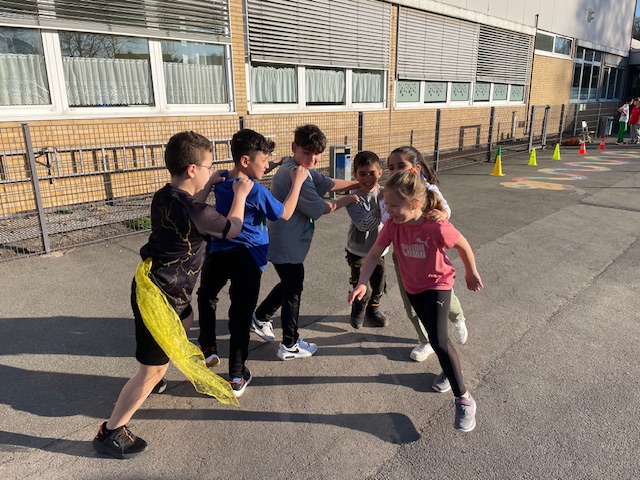04.04.2025 - Spiel- und Sporttag Unter dem Motto "Gemeinsam sind wir fit" gingen die Schülerinnen und Schüler unserer Heideschule an diesem Morgen an den Start. In jahrgangsüberfreifenden Teams absolvierten die Kinder insgesamt 16 multikulturelle Spiel- und Sportstationen. Gestärkt wurde sich zwischendurch am vielfältgen Obst- und Gemsüsebuffet, das Dank der vielen Elternspenden aufgebaut werden konnte. Ein toller Tag mit viel Bewegung. Zu den Fotos...